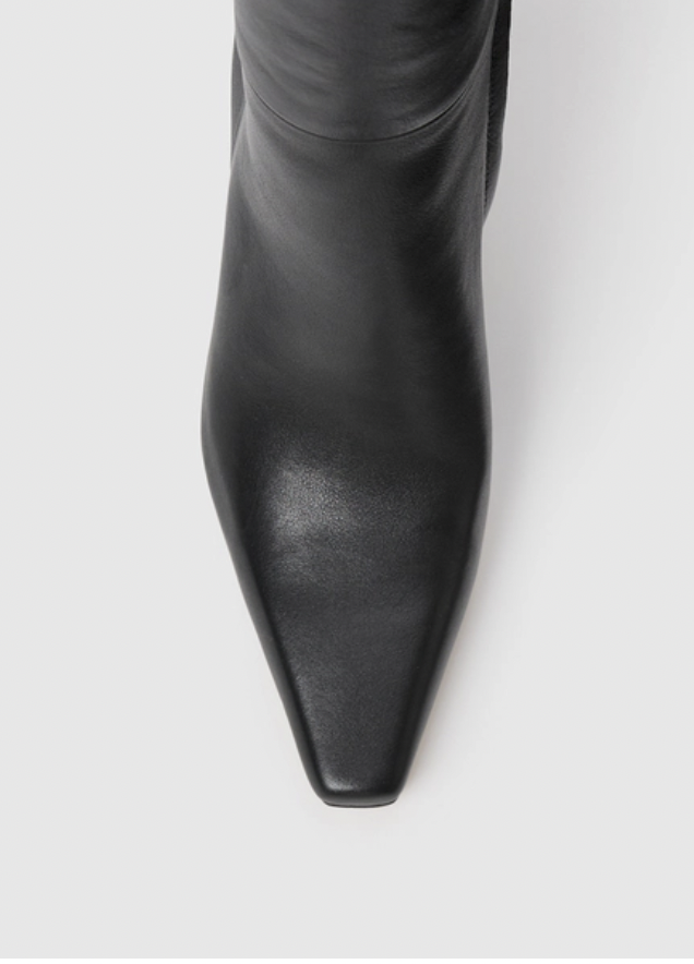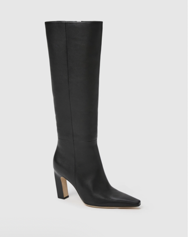 • This chic tall boot is crafted from luxe black leather. Finished with an inside zipper for easy on and off, perfect boot to elevate any outfit.